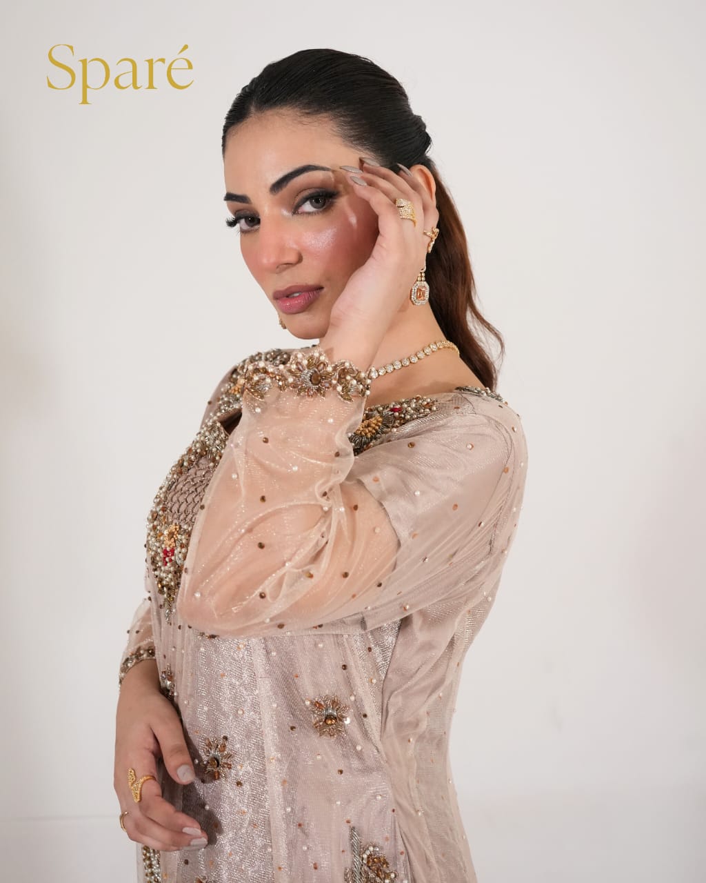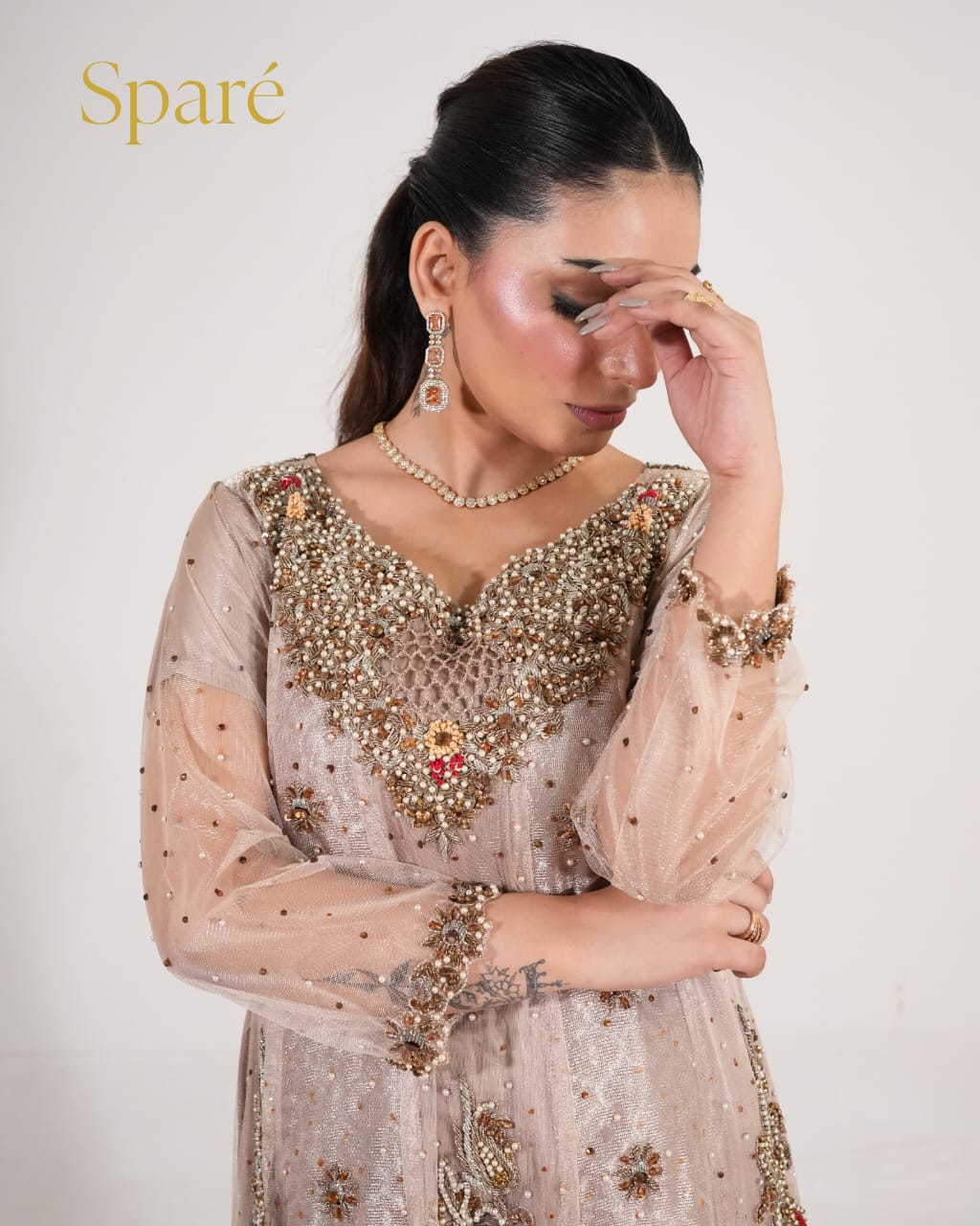 Eira-203 is your go-to for every celebration. Whether it's a dinner, dholki, or reception night, this delicately embellished outfit carries timeless charm with effortless grace.